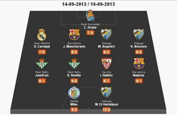 بعدما قدم عرض رائع في أول ظهور له مع فريقه الجديد ملقا ، تم اختيار المهاجم المغربي ضمن تشكيلة الأسبوع للدوري الاسباني .